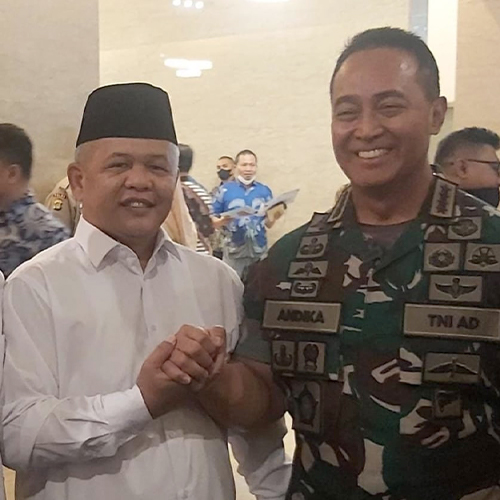 Silaturahmi di sela-sela acara, founder Yayasan Peduli Masyarakat Jabar H. Eman Sulaeman, S.H. bersama Panglima TNI (2021-2022) Jenderal TNI (Purn.) H. Muhammad Andika Perkasa